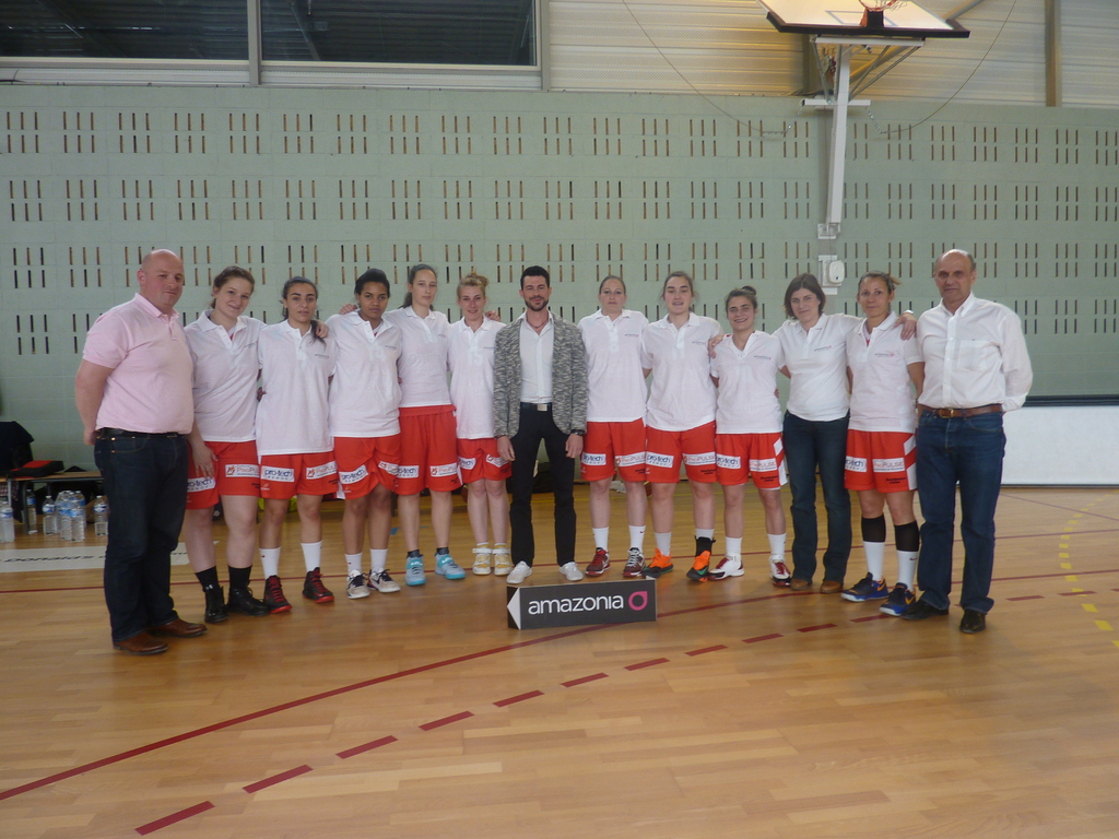 La photo d'avant match avec notre partenaire AMAZONIA, pour la remise des polos de présentation, merci Damien !