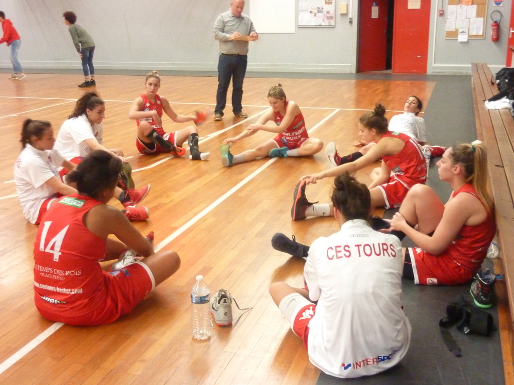 A la présentation des équipes, le journaliste limougeau qui était proche de notre banc, s'intérrogeait sur le différentiel de taille entre les 2 équipes et s'étonnait de notre classement. Il a vite constaté que le jeu fourni par les Tourangelles lors de ce 1er QT était de 1er ordre : attaques placées, contre attaques, % adresse remarquable (3 tirs primés d'entrée de Charlène et de Claire ), avec en plus une efficacité défensive, face aux grandes limougeaudes, qui les privait de ballon. Les Cestistes ont complètement assommé les "Postières" avec un score sans appel de 30 à 19. Vexées et certainement recadrées par leur coach, les Postières revinrent sur le terrain avec la ferme intention de stopper l'hémorragie pour montrer un meilleur visage à leur public. elles parvinrent à faire jeu égal dans le 2ème qt et limiter l'écart à 11 pts , 33/44 à la mi temps. Que s'est il passé dans les tête tourangelles ensuite, on ne retrouvait plus l'équipe flamboyante du début de partie, donnant ainsi une motivation complémentaire à des limougeaudes retrouvées et agressives, résultat 16/11 (fin 3ème 49/55) - 6 pts la partie était relancée. Le public jusque là très discret se mit à croire à un revirement de la situation et donna de la voix à l'entame du dernier QT. C'est donc avec un moral d'enfer que les locales revinrent sur le terrain bien décidées à s'offrir un succès que leur remontée pouvait laisser entrevoir. Mais Jérôme calmement remit "les pendules à l'heure". Les filles, sans paniquer face à la furia adverse, laissèrent passer l'orage et reprirent avec maîtrise, la possession du jeu, en poussant les Limougeaudes à plusieurs pertes de balles, les privant ainsi de toute possibilité de retour, d'autant que Charlène était intenable avec des tirs à longue portée !